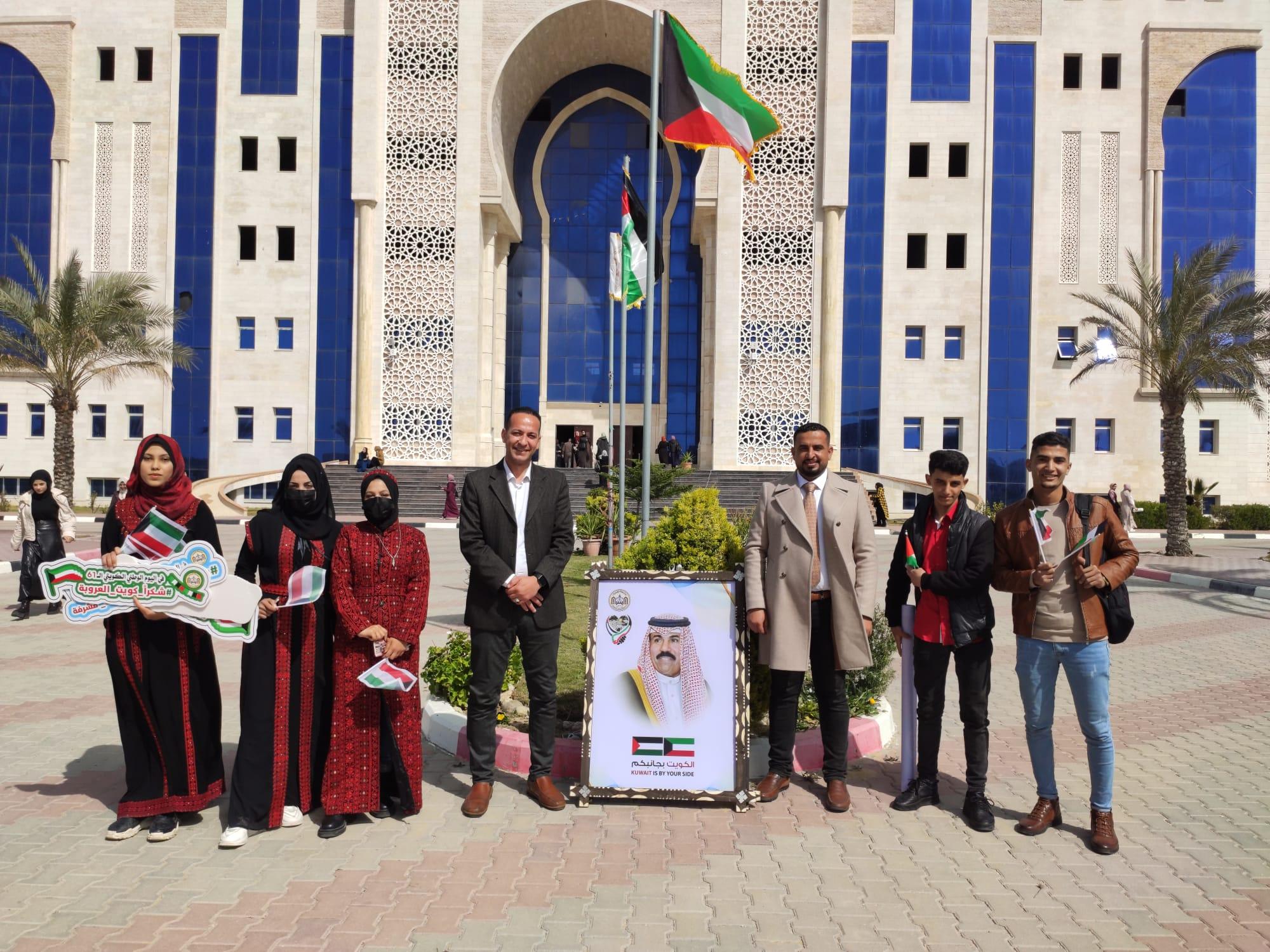 نظمت جامعة الإسراء، اليوم الخميس، عدة فعاليات احتفالية بمناسبة حلول الذكرى الــ 61 لاستقلال دولة الكويت الشقيقة، والذكرى الــ 31 للتحرير، وذلك في مقر الجامعة الرئيس بمدينة الزهراء وسط قطاع غزة.